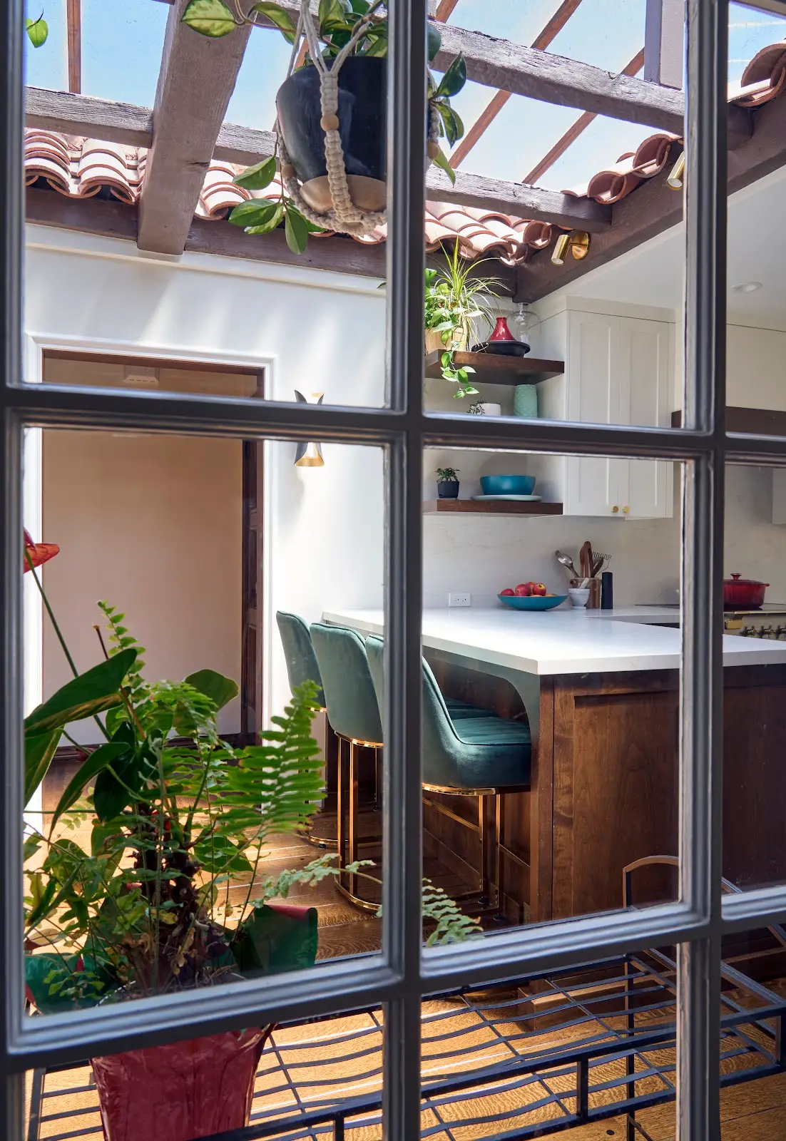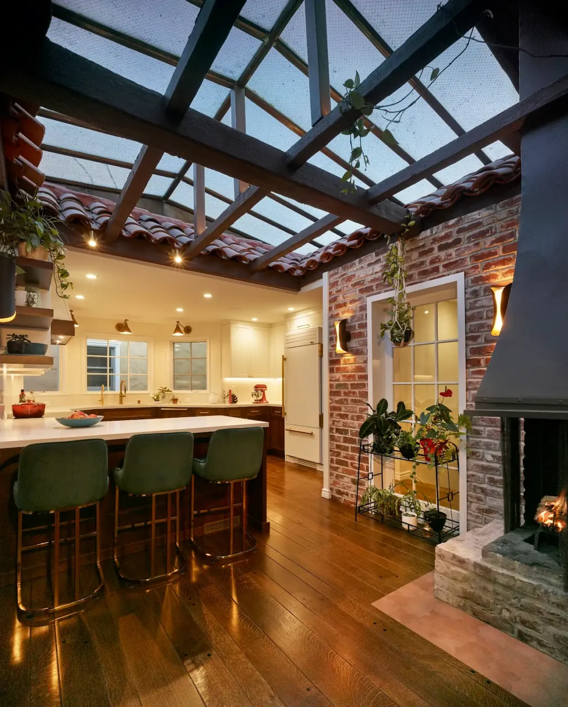 When our clients bought this century-old Spanish-style house, there was no shortage of charm and character—an octagonal entry foyer with doors leading to each of the major spaces; abundant wood detailing; three fireplaces; and comfortable, human-scaled rooms throughout. But the most striking feature was a central courtyard, an originally outdoor space that had been covered with a skylight and become the heart of the interior.